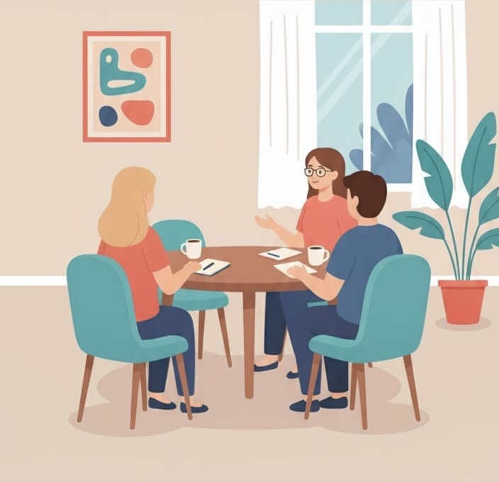 Neben der Einzeltherapie ist die Gruppenpsychotherapie ein wichtiger Bestandteil meines Behandlungsangebotes. Während der Gruppensitzungen wird erlebbar, dass man mit den eigenen Problemen nicht alleine ist. Eine weitere Stärke ist, dass Teilnehmende voneinander und miteinander lernen.